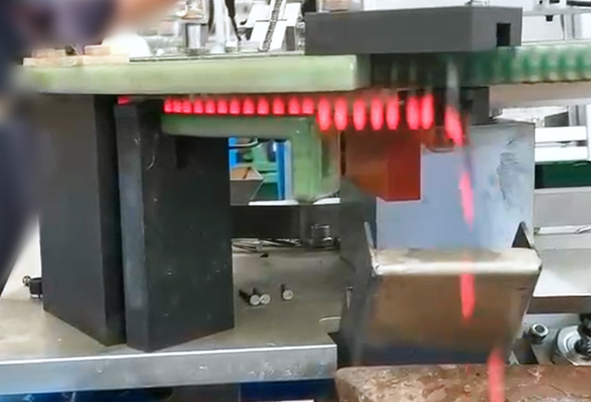 宏创高频针对水泥钉热处理开发了自动化淬火解决方案,将高频感应加热与自动送料、分检、冷却系统集成于一体,实现了从人工操作到自动化生产的转变。