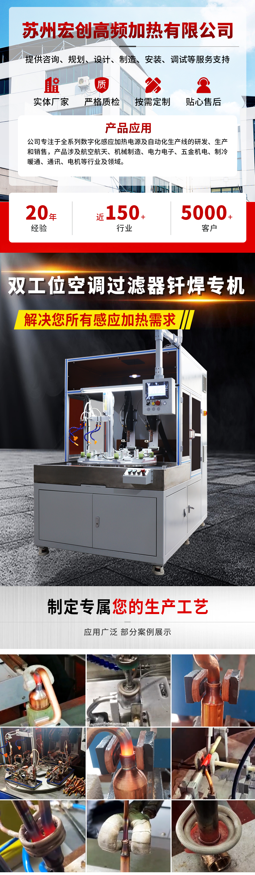 宏创高频投入大量人力、物力重视研发设计,48小时提供自动化感应加热专机解决方案。拥有多名从事加热设备行业10年以上的工程师,且相继获得专利和软著认证30余项。