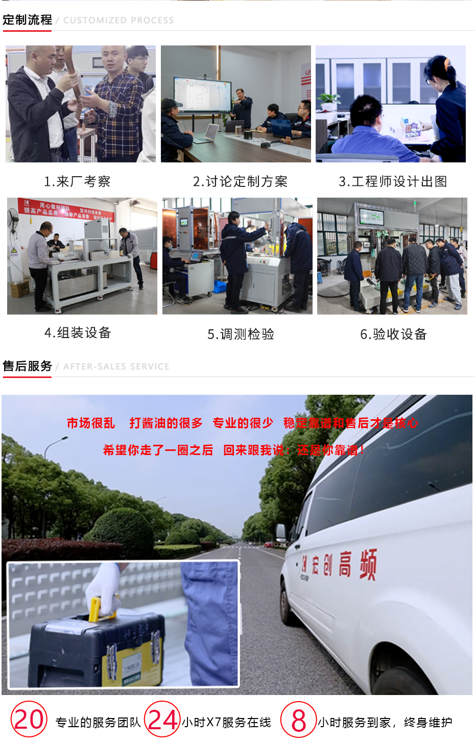 协同服务 service 宏创高频承诺一年质保、终身维保。设立24小时在线客服,响应客户紧急需求,保障客户利益,可提供24小时内上门支持。 宏创高频承诺一年质保、终身维保。设立24小时在线客服,响应客户紧急需求,保障客户利益,技术在线解答疑惑,半小时内给予解决方案,可提供24小时内上门支持。