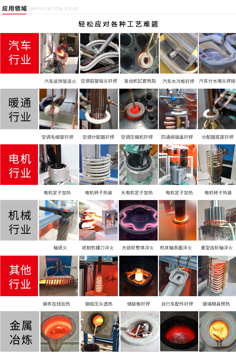 规模量产 production生产厂家直营,欢迎实地考察洽谈,可针对钎焊/热装/热拆/退火/透热/热锻/预热/平面加热/手持式/淬火等工艺给予解决方案;年生产能力上万台。 生产厂家直营,欢迎实地考察洽谈,可针对钎焊/热装/热拆/退火/透热/热锻/预热/平面加热/手持式/淬火等工艺给予解决方案;年生产能力上万台。