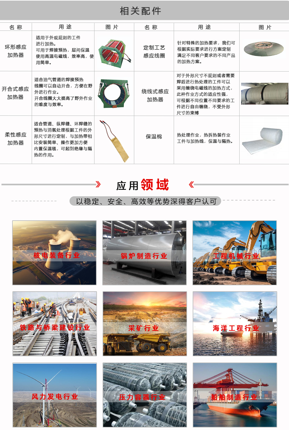 风电、核电设备的焊接预热、压力容器的焊接预热等。