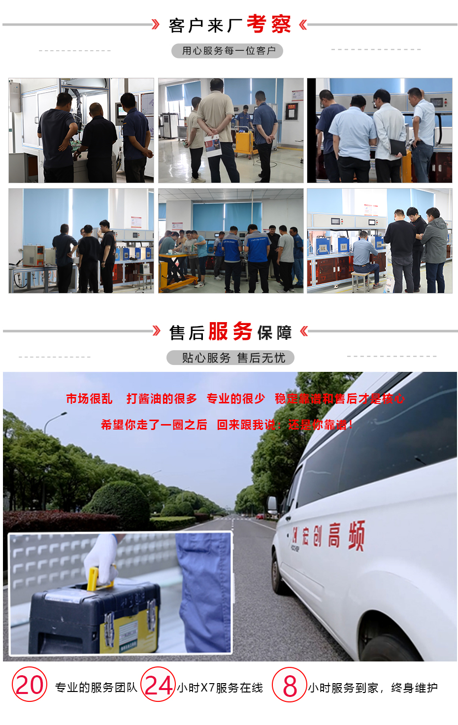 宏创高频承诺一年质保、终身维保。设立24小时在线客服,响应客户紧急需求,保障客户利益,技术在线解答疑惑,半小时内给予解决方案,可提供24小时内上门支持。